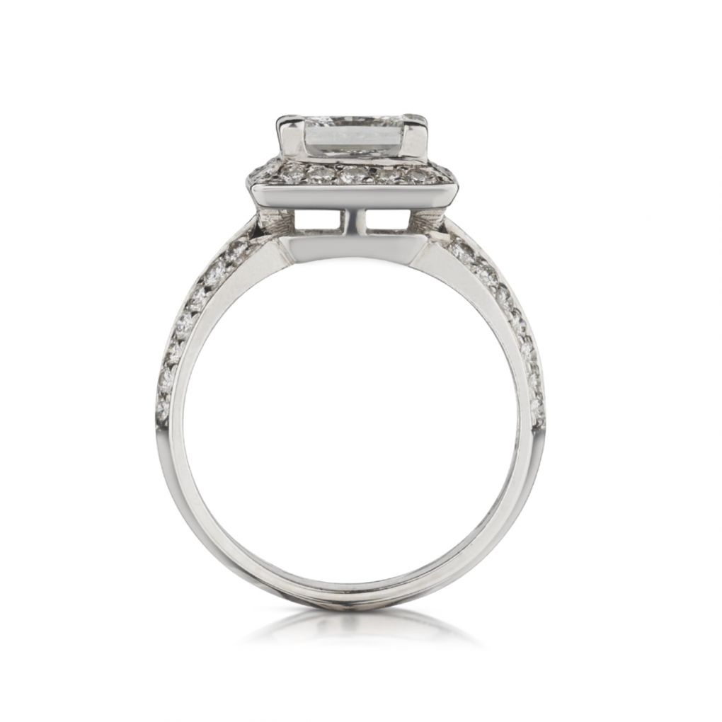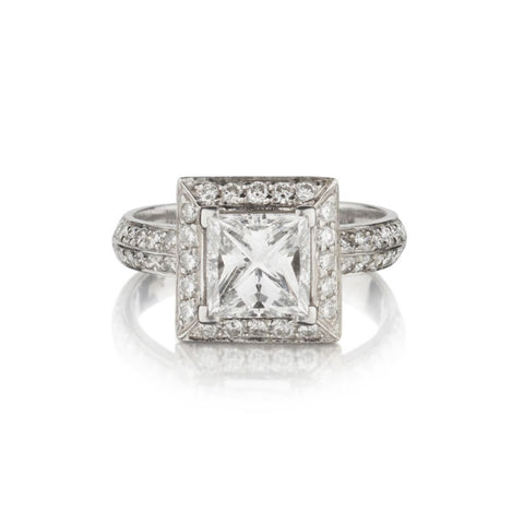1.52 Carat GIA Princess Cut Diamond Halo-Set WG Engagement Ring