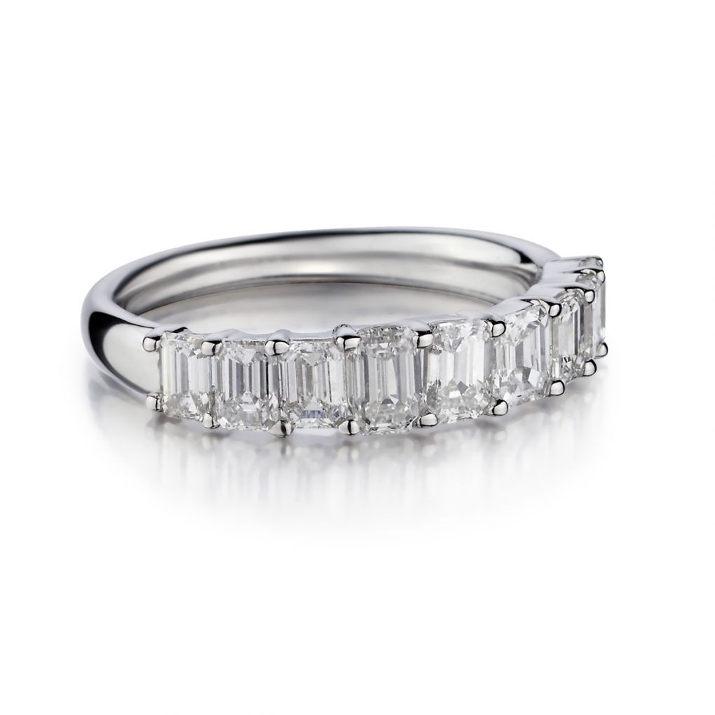 Ladies 14kt White Gold Emerald Cut Diamond Band.9 x 2.00ct Tw