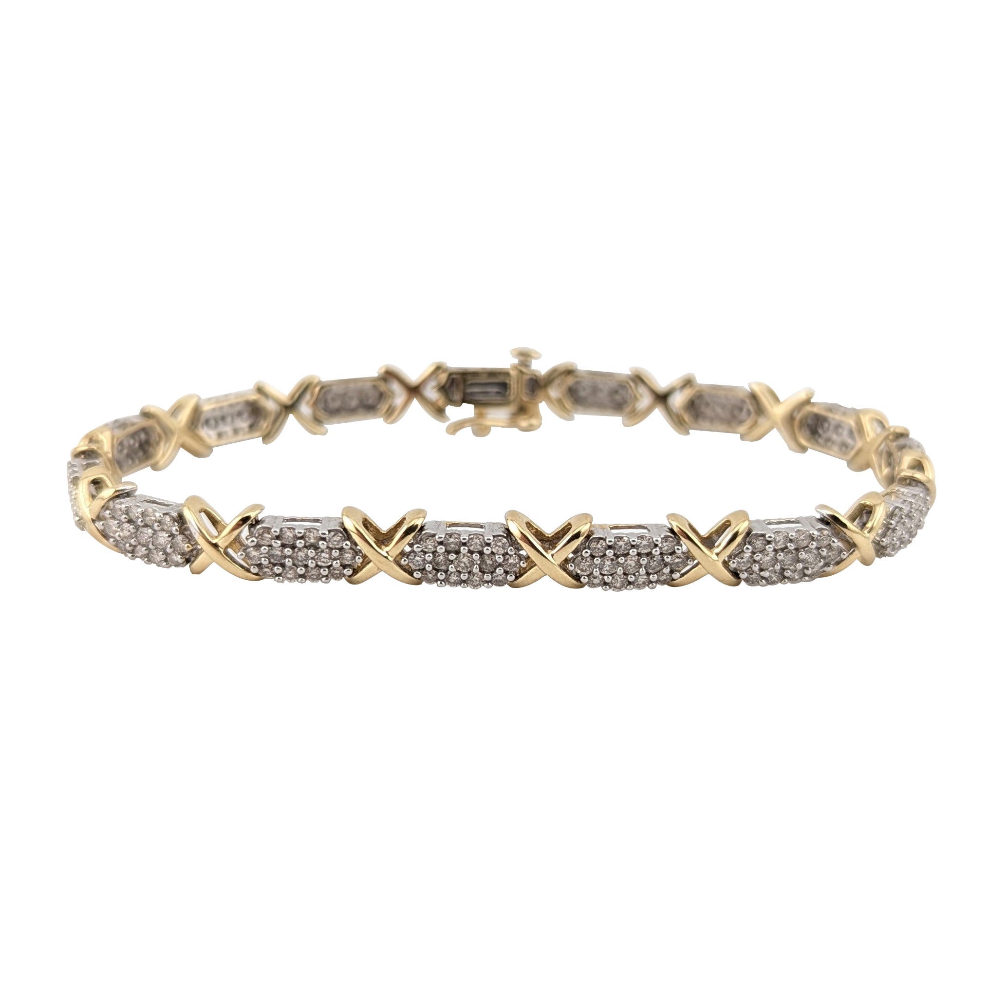 • 10kt White and Yellow Gold Diamond Pave Tennis Style Bracelet