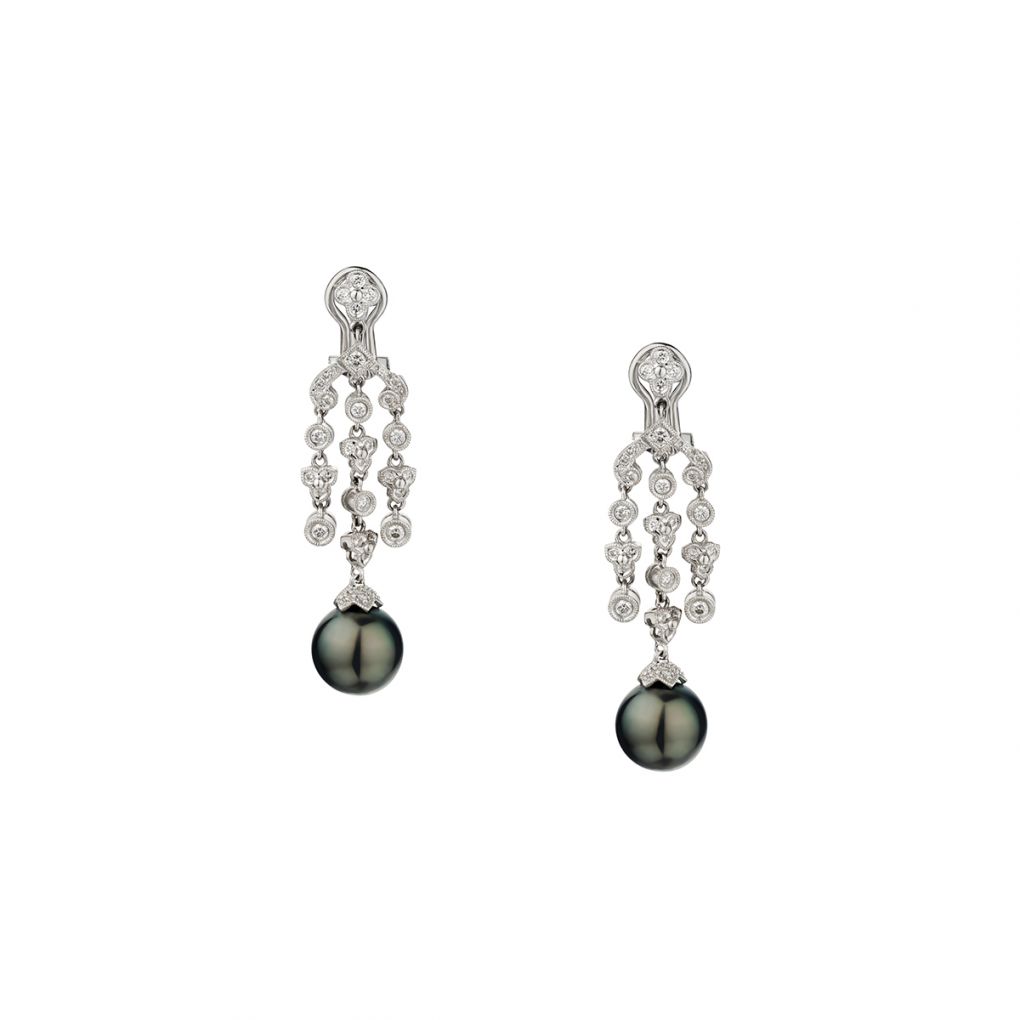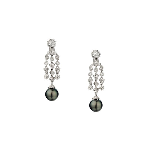 10MM Tahitian Pearl And Diamond WG Drop Pendant Earrings
