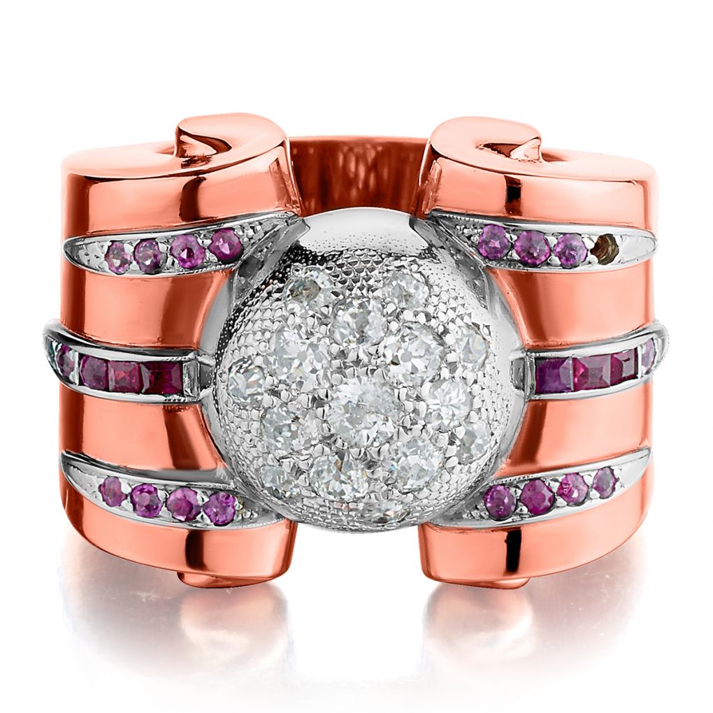 • 14KT Rose And White Gold Old-Mine Cut And Ruby Vintage Ring