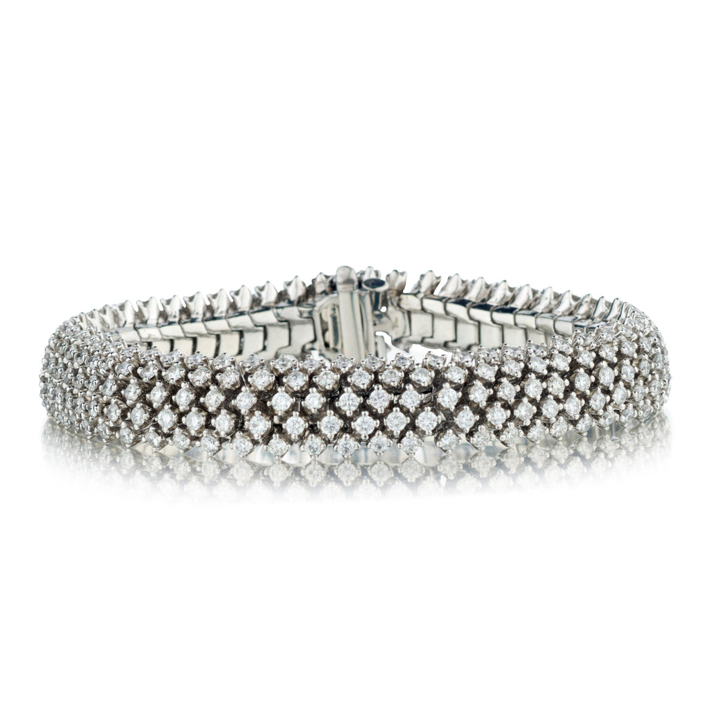 • 14kt White Gold Diamond 5 Row Tennis Bracelet. 13.75ct Tw