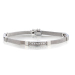 18kt white gold diamond bracelet featuring 18 x 0.45 total carat weight of Brilliant cut diamonds of (I-1) in colour and (H-I) in colour. This bracelet measures 7-1/2 " (L). 5mm (W). Weight: 15.55 grams. Concealed secure clasp. Made in Italy.
