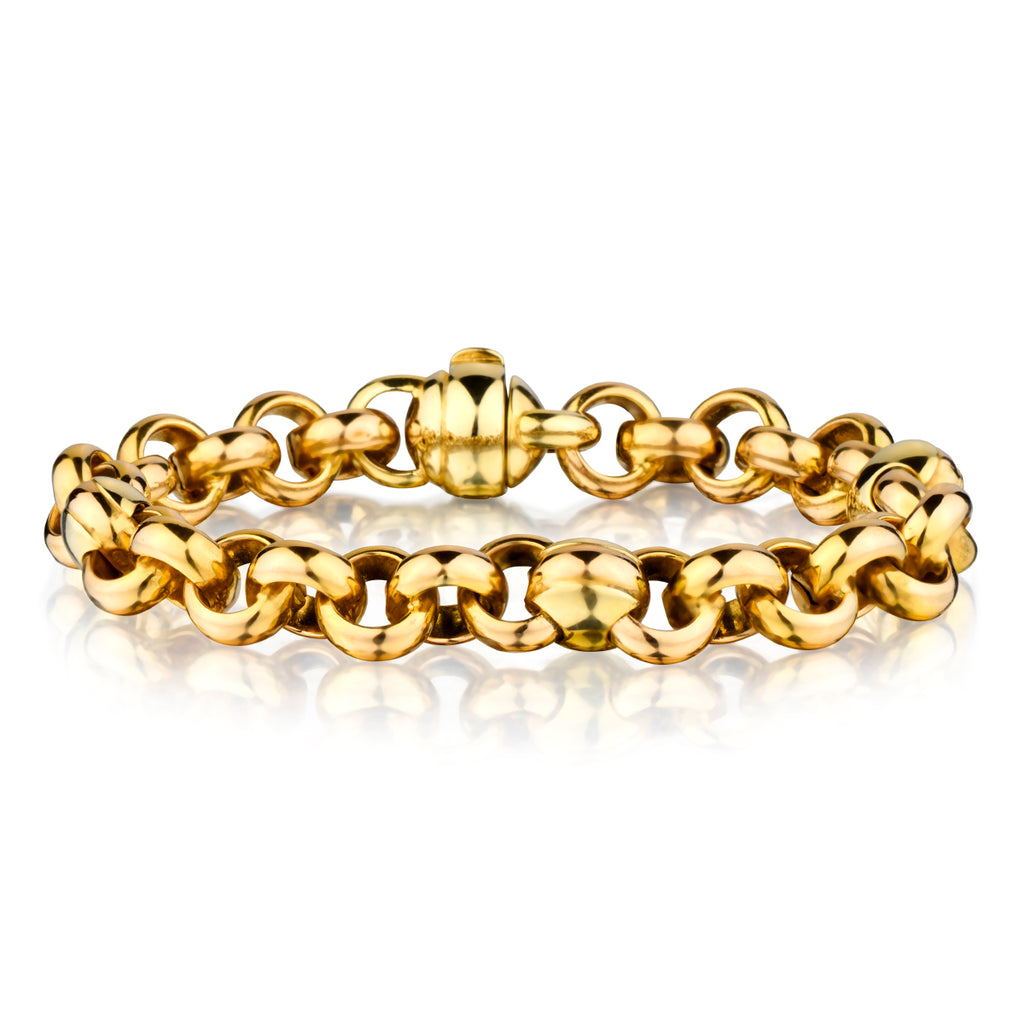 14kt yellow gold open link bracelet. Links measure: 11mm. This bracelet measures: 8" (L). Weight: 32.4 grams. Made in Italy