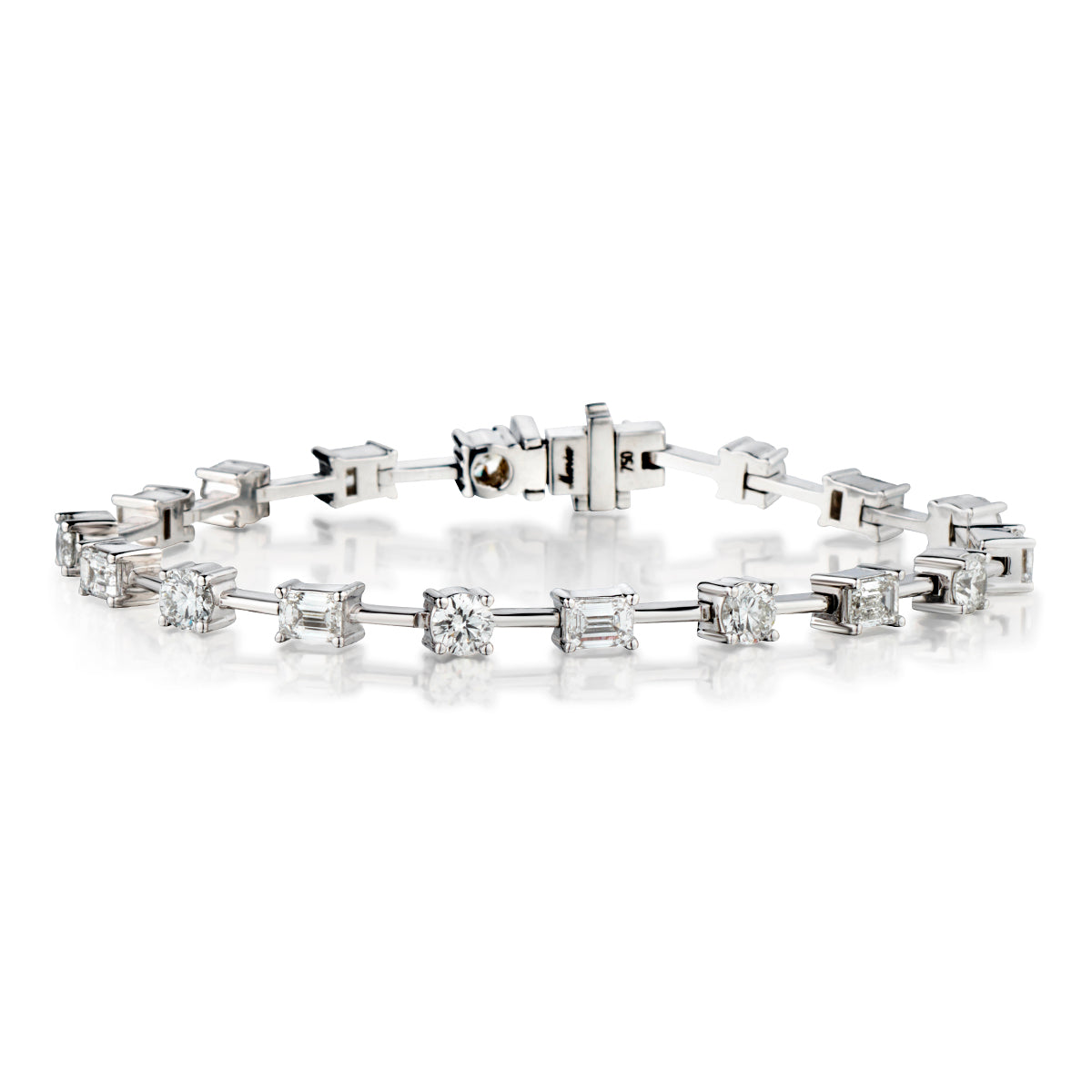 • 18kt White Gold Diamond Bracelet. 6.60ct Tw Brilliant and Emerald Cut Diamonds