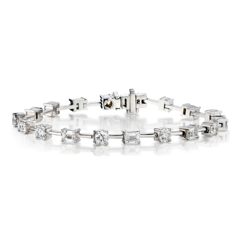 18kt White Gold Diamond Bracelet. 6.60ct Tw Brilliant and Emerald Cut Diamonds