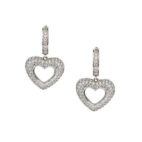• 18kt White Gold Diamond Pave Set Heart Earrings. 1.25ct Tw