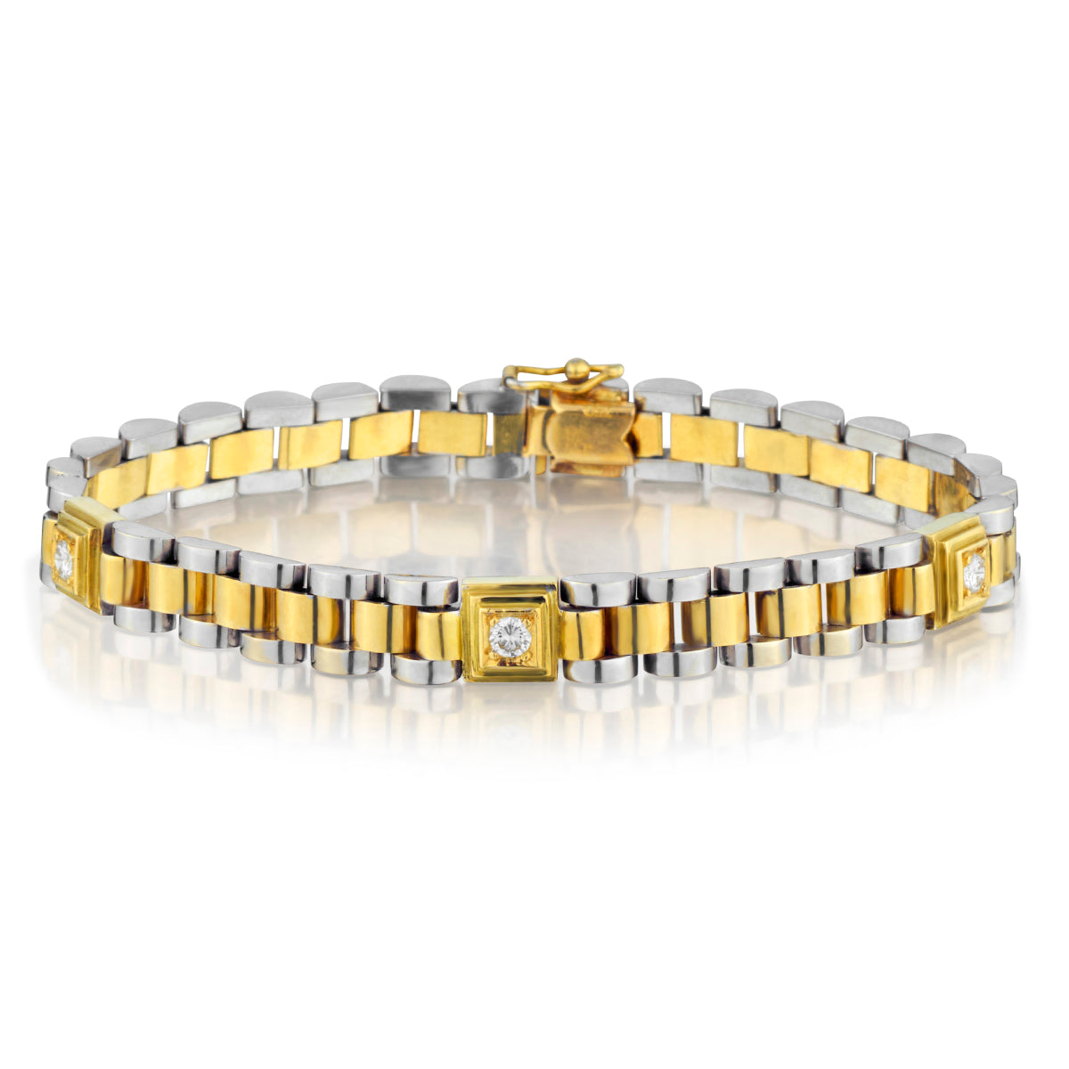 18kt Yellow and White Gold Link Bracelet. 3 x 0.30ct Tw. 33.3 Grams