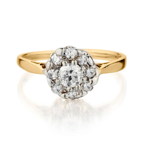 18kt Yellow Gold and Platinum Diamond Vintage Cluster Ring