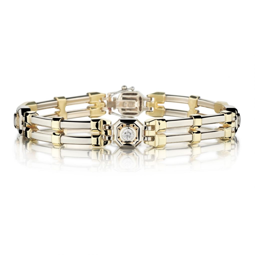 • 18KT Yellow Gold And White Gold Mens Diamond Bracelet