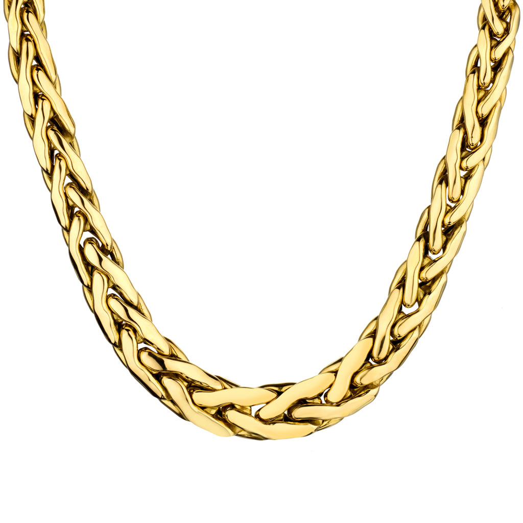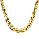 18kt yellow gold braided choker chain. This chain measures: 17.5". Weight: 84.60 grams. 16mm (W) and tapering to 10mm. Made in Italy.