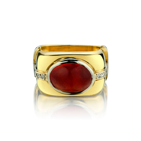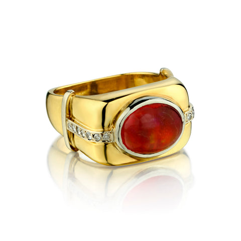 18kt Yellow Gold Custom Made Orange Opal and Diamond Ring.