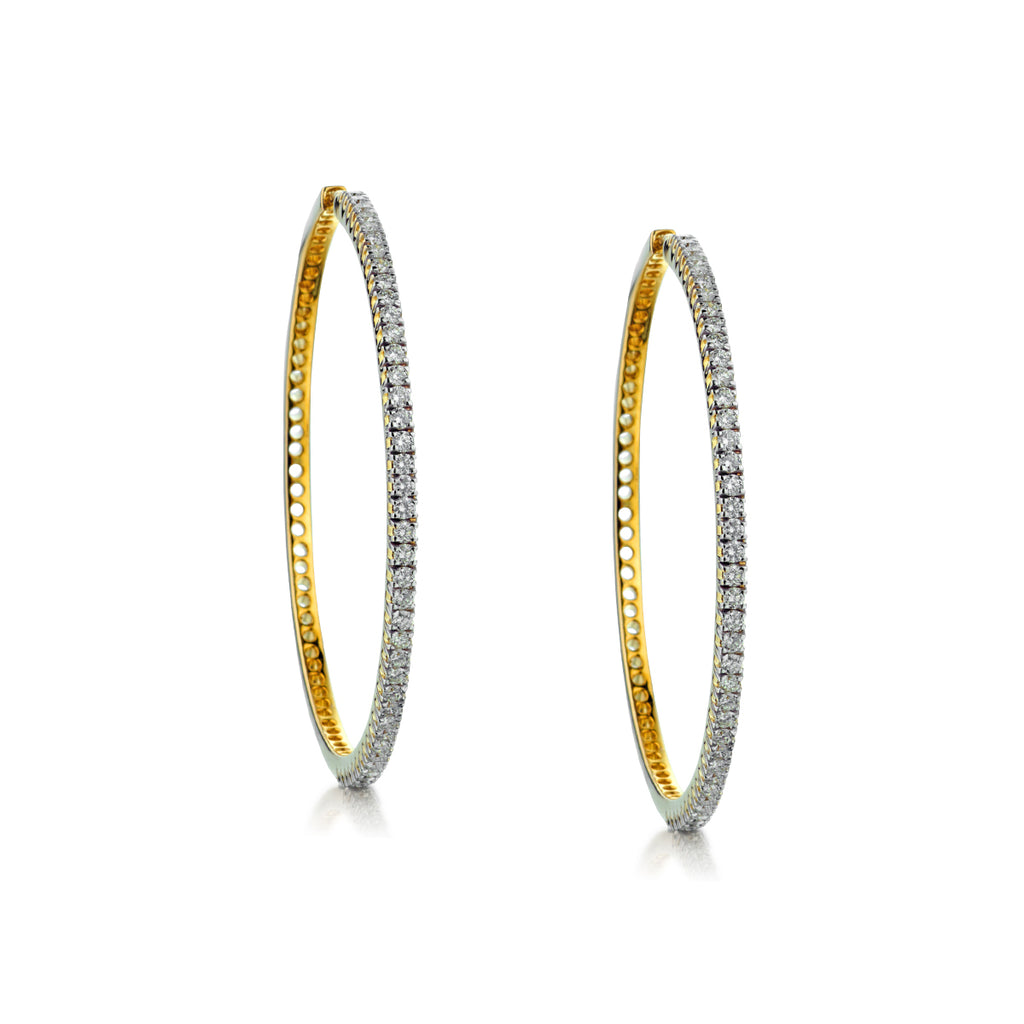 18kt Yellow Gold Diamond Large Hoop Earrings. 3.00ct Tw