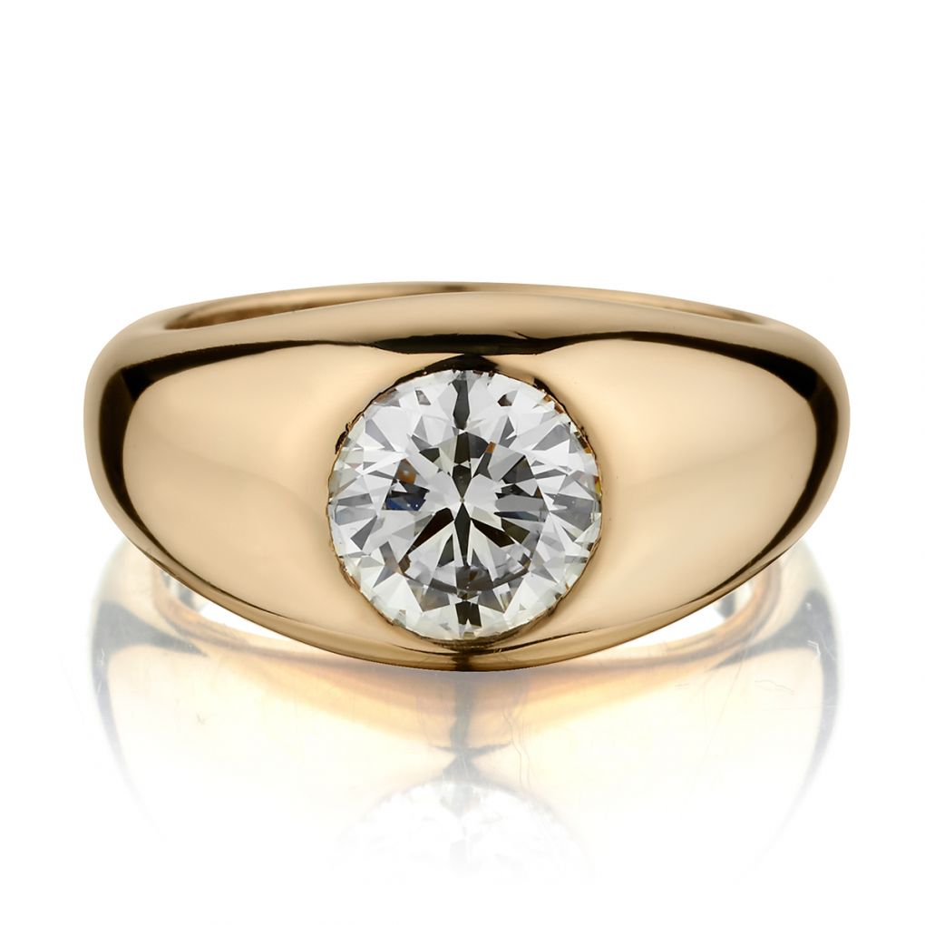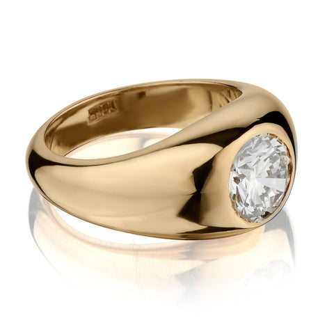 Beautiful solid 18kt yellow gold dome shaped diamond ring featuring a 2.00 carat weight European Cut diamond of (VVS) in clarity and (J-K) in color. Finger size is 8. This ring can be resized. Weight is 18,4 grams.