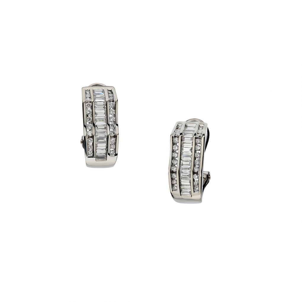 • 2.00 Carat Total Weight Round Brilliant And Baguette Cut Hoop Earrings