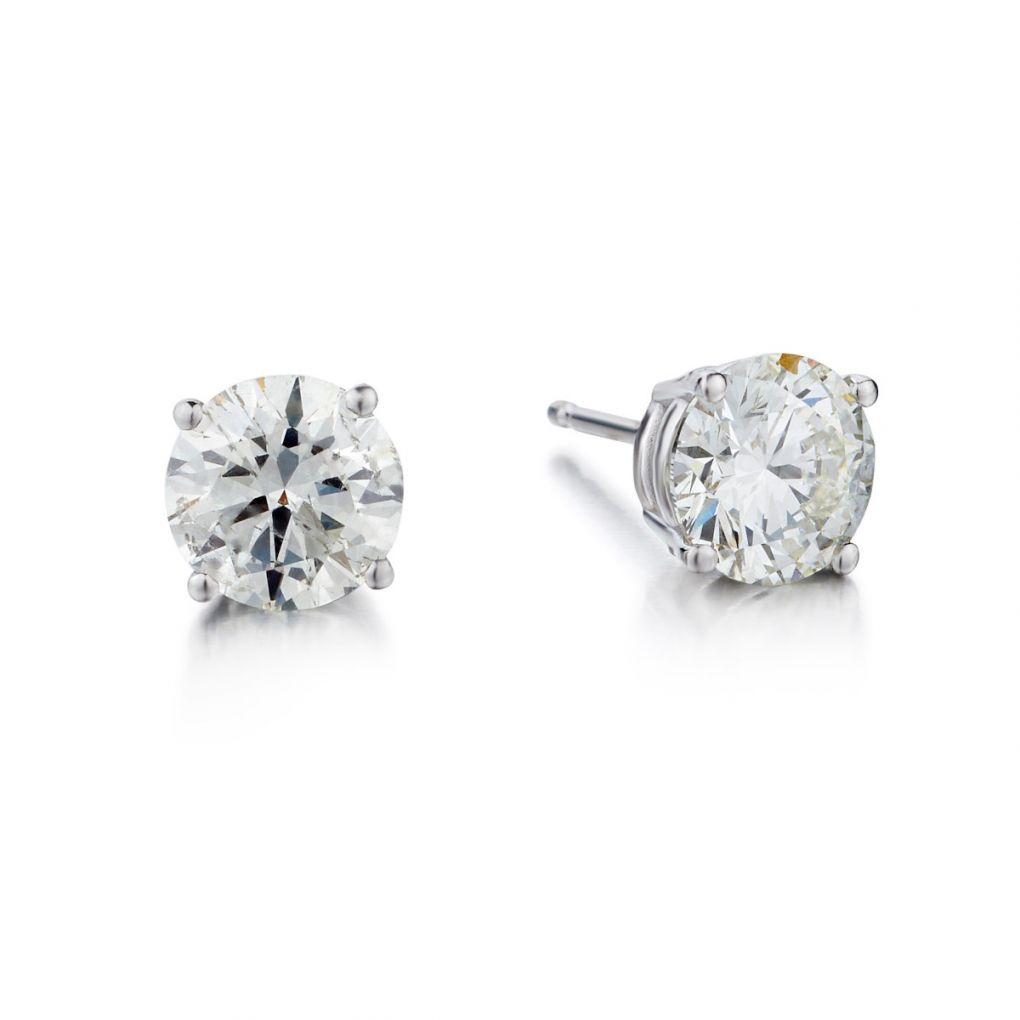 2.04 Carat Total Weight Round Brilliant Cut Diamond Stud Earrings