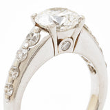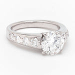 Ladies Platinum ring featuring a 2.28 carat Round Brilliant cut diamond of (SI-1) in clarity and (F) in color. Also featuring (12) round brilliant cut diamonds measuring approximately 1.10 total carat weight on the mount.