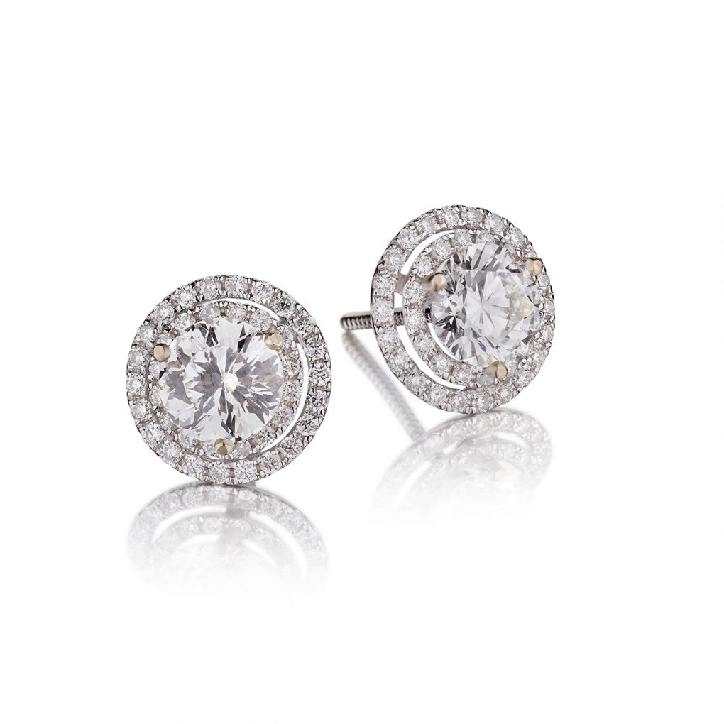 • 2.30 Carat Total Weight Round Brilliant Cut Diamond Halo Studs