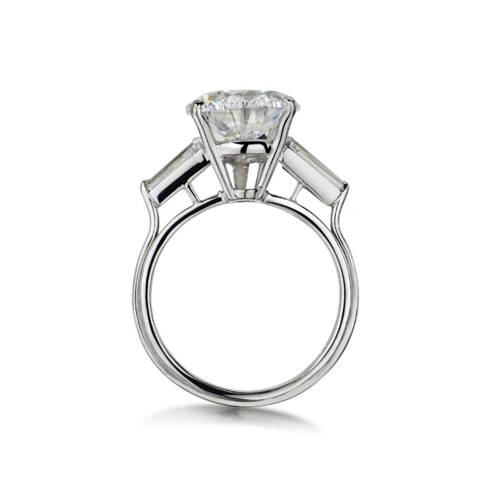 Ladies magnificent platinum diamond engagement ring centering a 3.60 carat Pear-shaped diamond of (VS-2) in clarity and (D) in color; flanked between (2) tapered baguettes weighing 0.20 carat total weight. Currently a finger size 5 but can be resized.