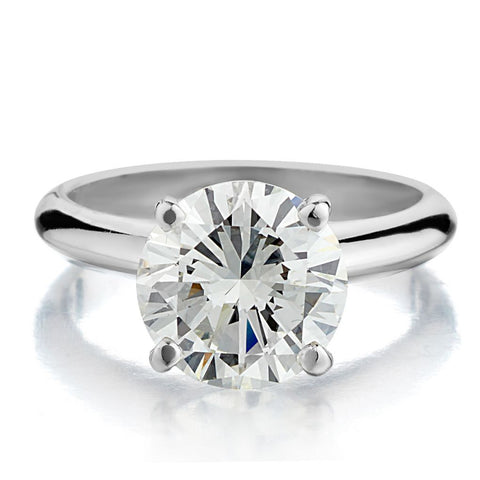 Ladies 18KT white gold solitaire ring featuring a 3.92 carat Round Brilliant-cut diamond of (I-1) in clarity and (J) in color.