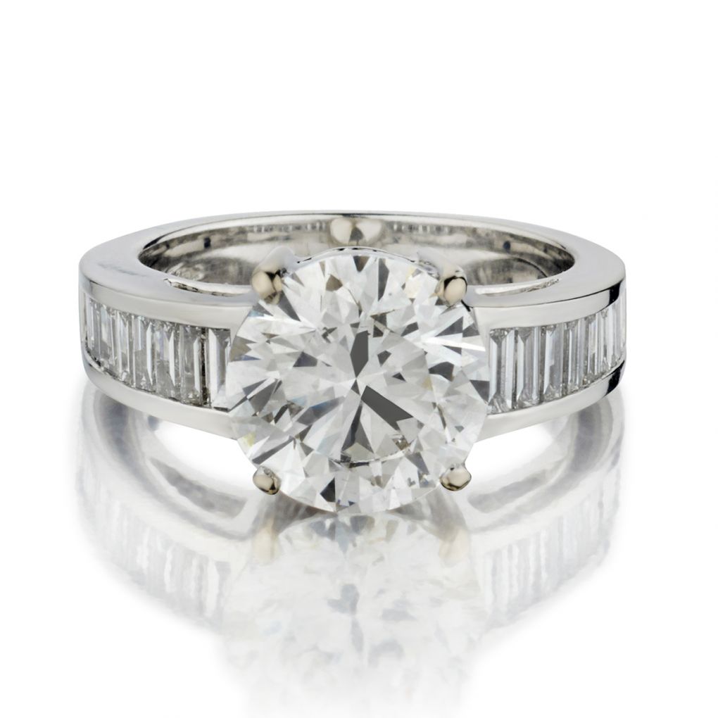 4.12 Carat Round Brilliant Cut Diamond Channel Set Baguette Ring