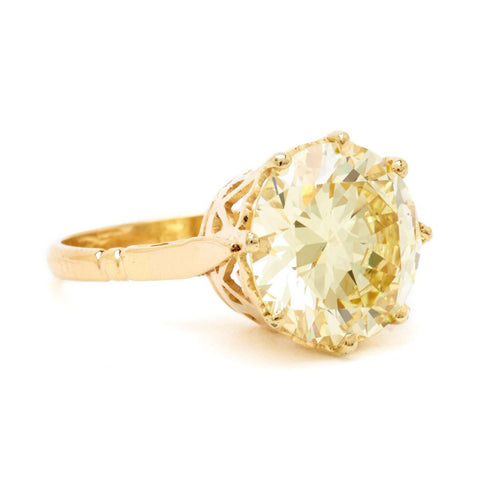 5.54 Carat Round Brilliant Cut Fancy Yellow Diamond Ring