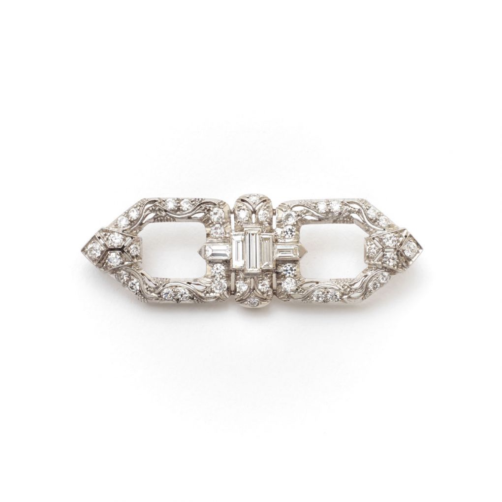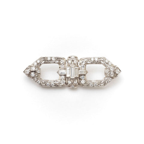 • Art Deco Baguette & European-Cut Diamonds Platinum Brooch