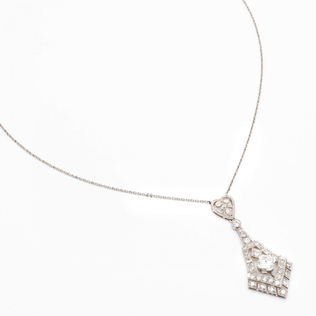 • Art Deco Old Cut Diamond 'V' Motif Platinum Pendant