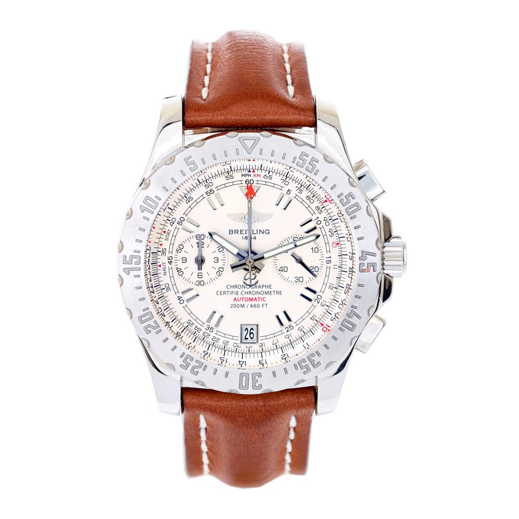 Gent's Stainless steel Breitling Skyracer Chronograph Automatic Wristwatch. 43.7mm. Purchased in 2011. Silver Guilloche dial with luminous hands and index hour markers. 16mm case thickness. Water resistant at 200 meters. Reference #: A27362.