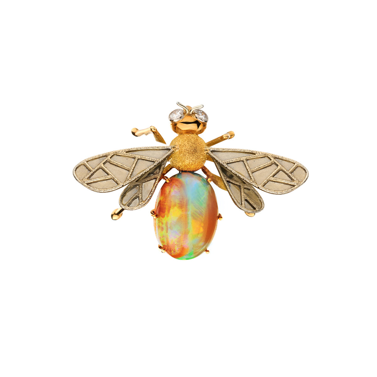 • Toni Cavelti 18kt Yellow Gold and Opal Body Bumble Bee Brooch.