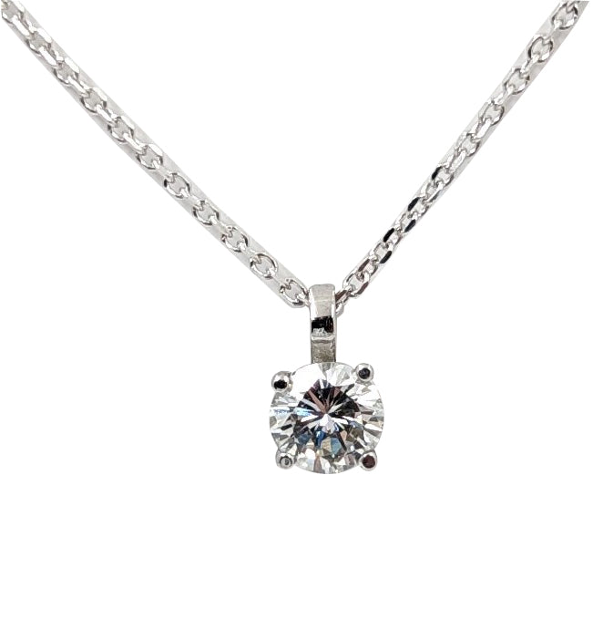 14ct white gold solitaire pendant set with a round modern brilliant cut diamond 1.52 ct, colour (H) and clarity ( I-3)