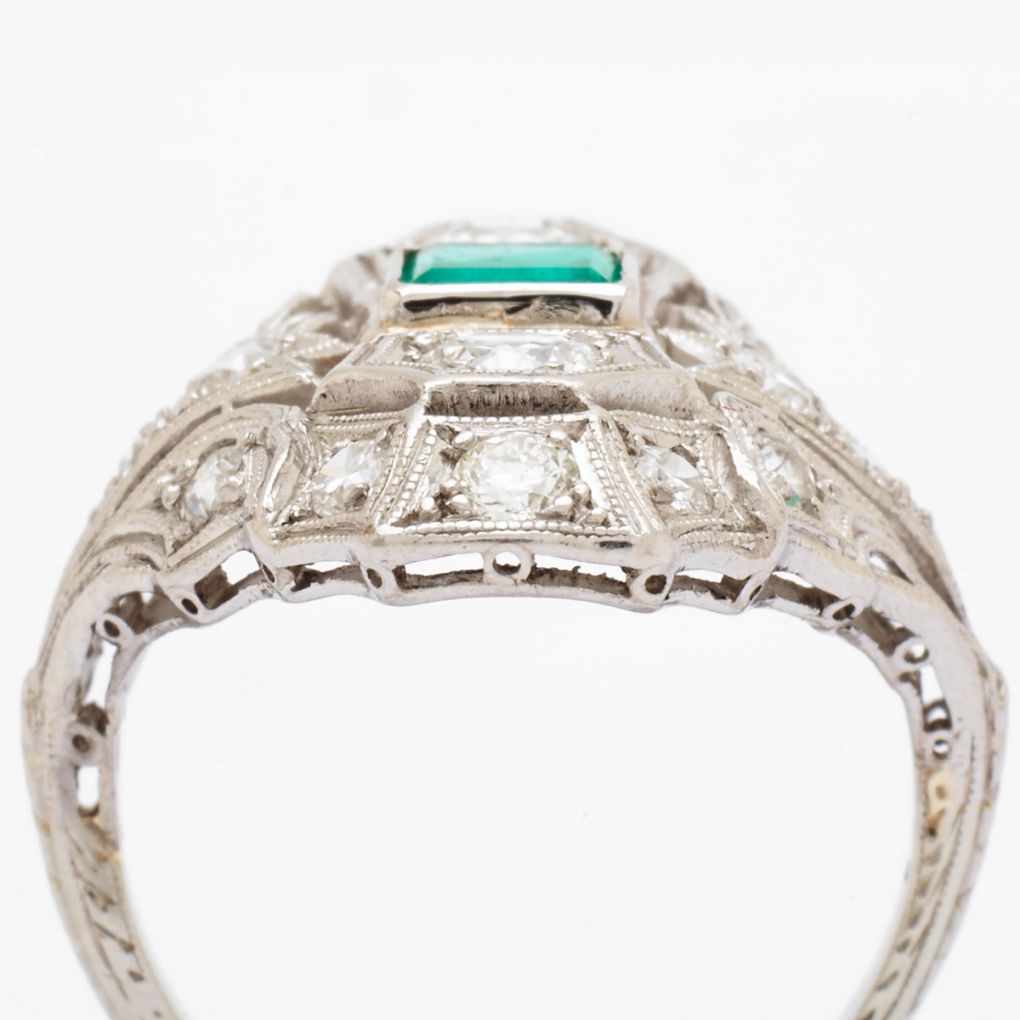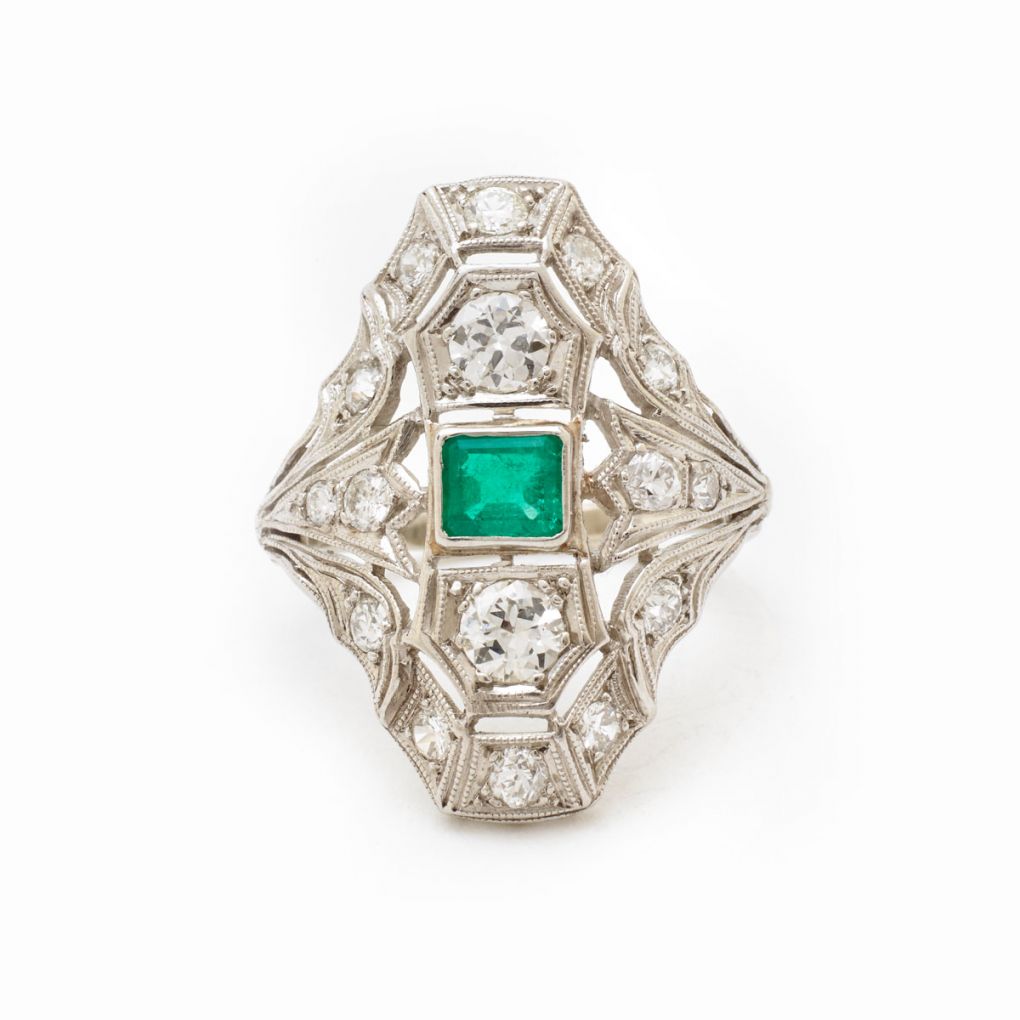 • Edwardian Green Emerald & Diamond Platinum Ring