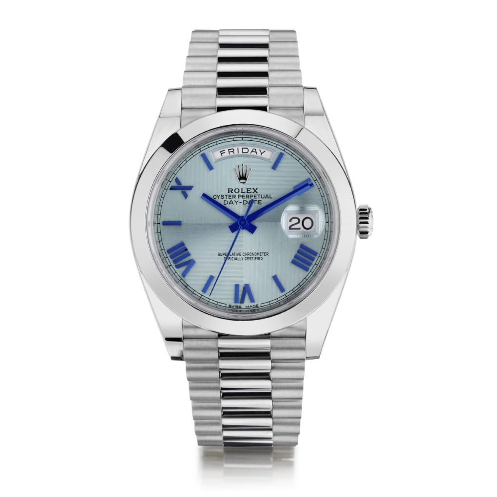 • Gents Rolex Day-Date 40mm Ice Blue. Platinum.