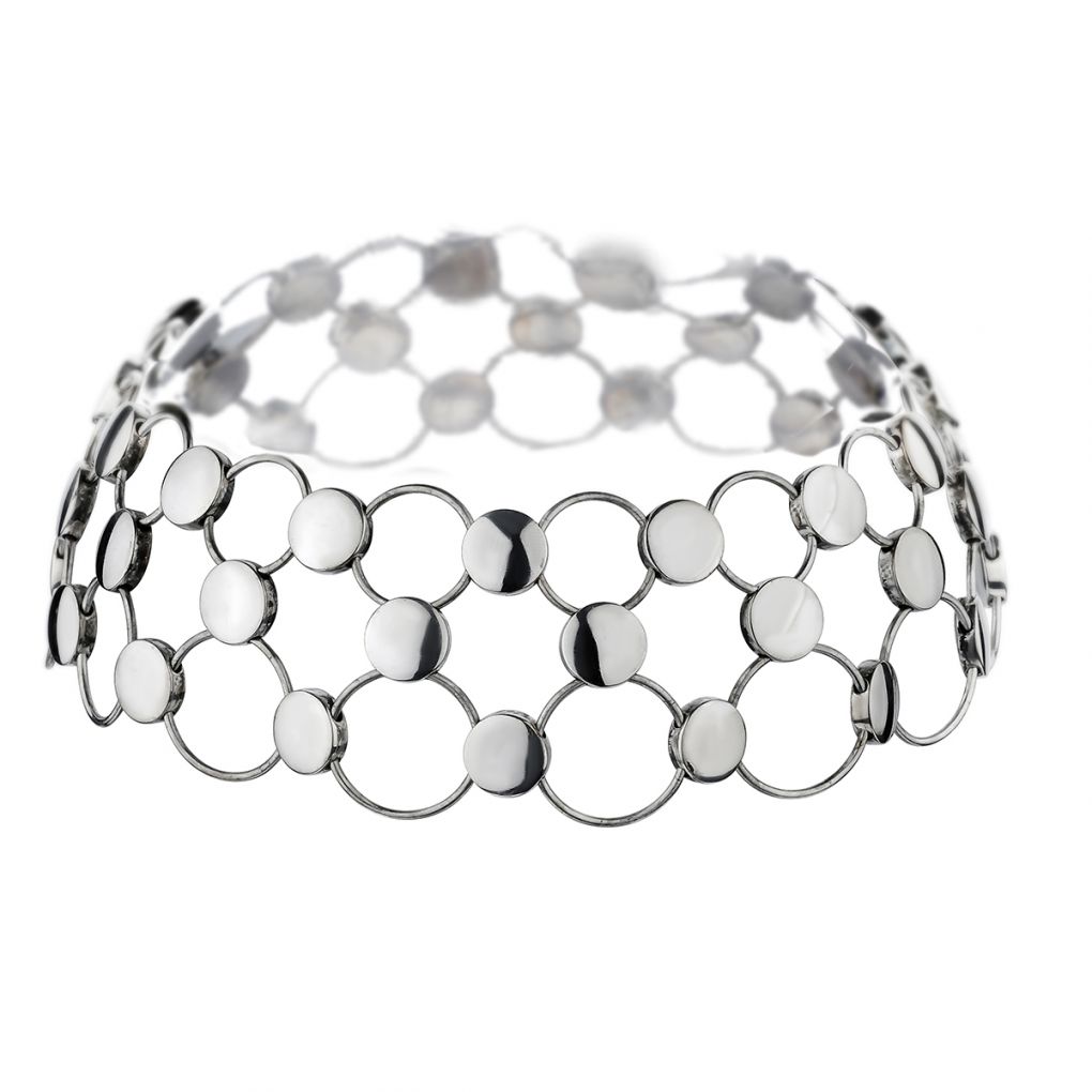 Georg Jensen Modernist Regitze Overgaard collar in sterling silver .Avante Garde. Denmark. Measuring :18-1/2 inches in length x 17/8 inches in width. Weight :236 grams.