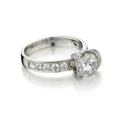 • Ladies 14kt White Gold Diamond Ring. 1.30 Carat Brilliant cut Diamond