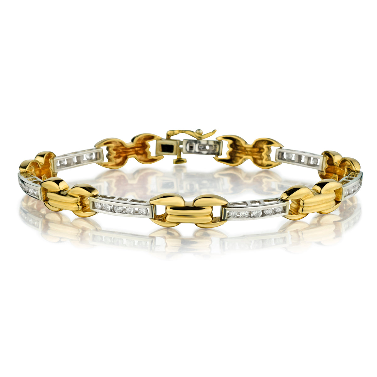 • Ladies 14kt Yellow and White Gold Diamond Bracelet. 35 x 1.30ct Tw