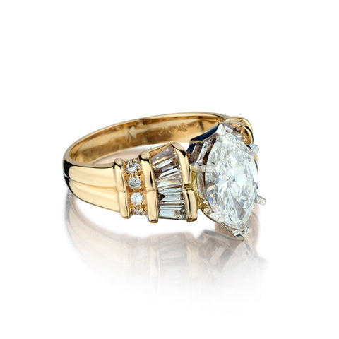 • Ladies 14kt Yellow Gold Diamond Ring. 2.25 Marquise Cut Diamond