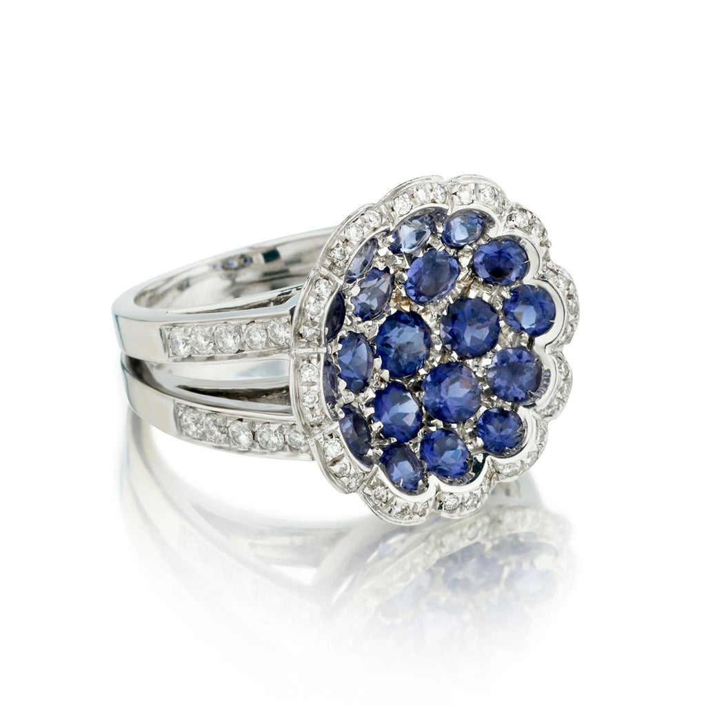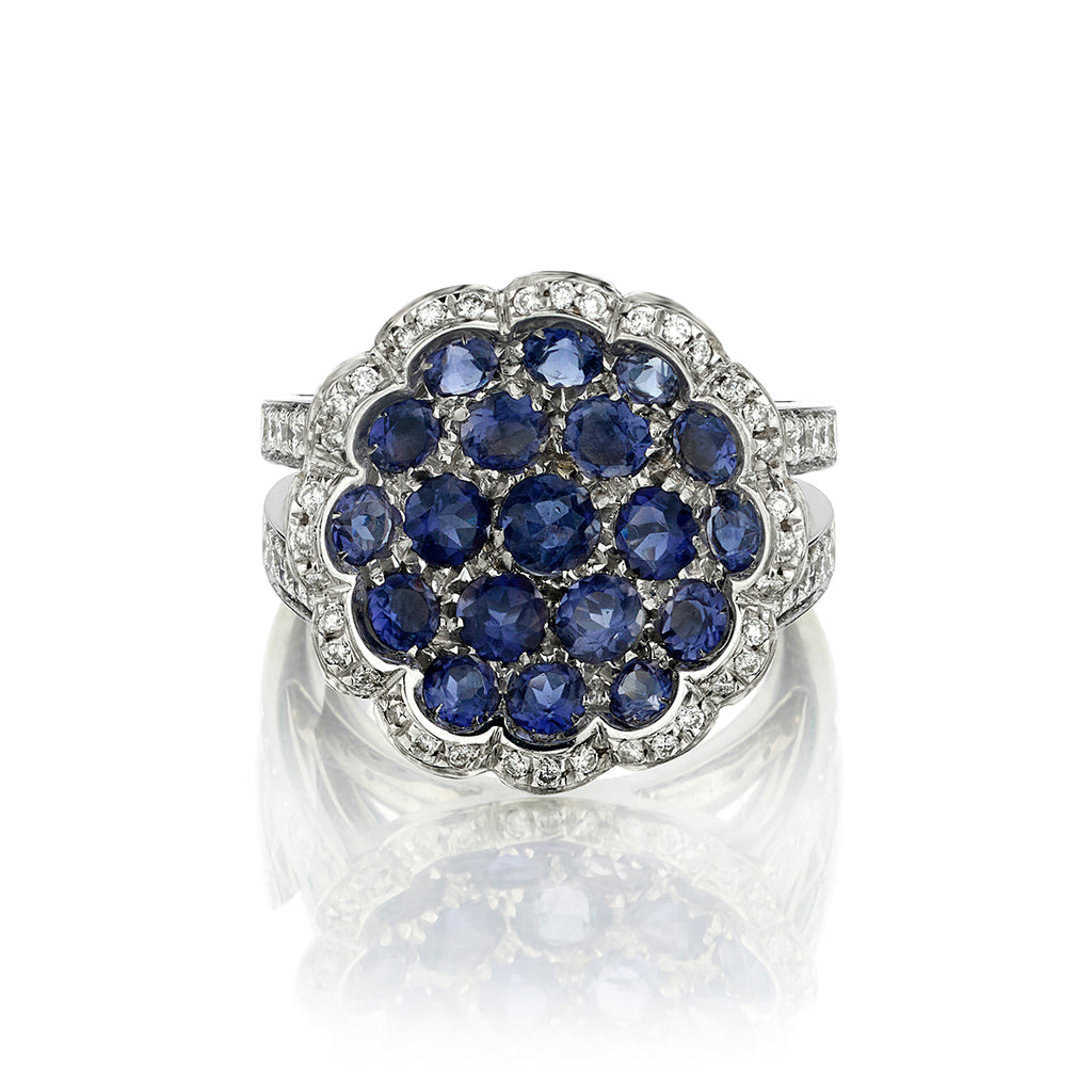 • Ladies 18kt White Gold Diamond and Tanzanite Cluster Ring