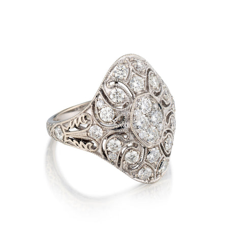 Ladies 18kt White Gold Vintage Ring. 1.20ct Tw