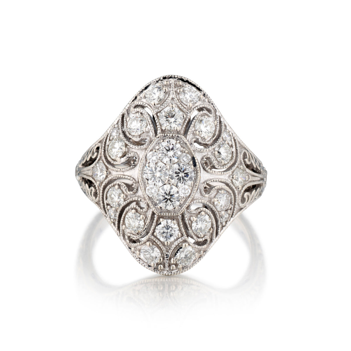• Ladies 18kt White Gold Vintage Ring. 1.20ct Tw