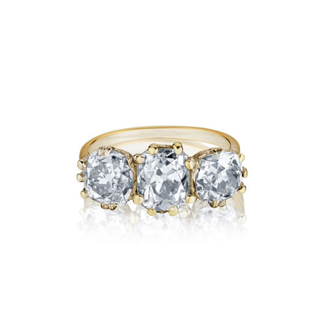 Ladies Platinum Vintage 3 Stone Diamond Ring. 5.40 Ctw Cushion Cut Diamonds
