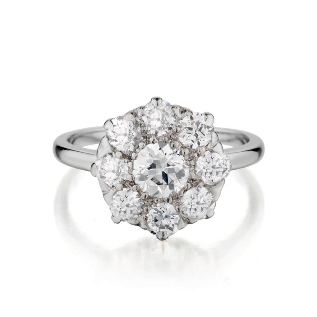 • Ladies Platinum Art Deco Vintage Cluster Ring. 1.60ct Tw European cuts.