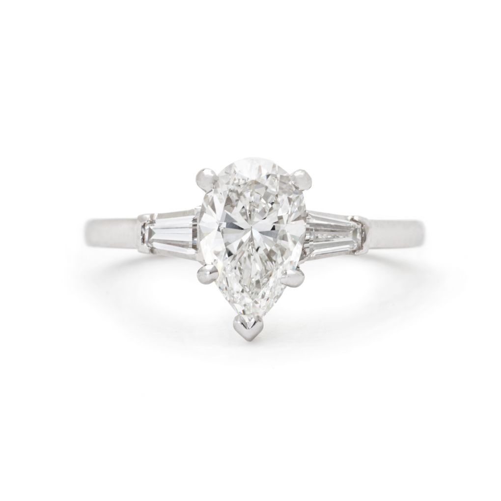 • Platinum 2.60 Carat Natural Pear-Shaped Diamond Ring