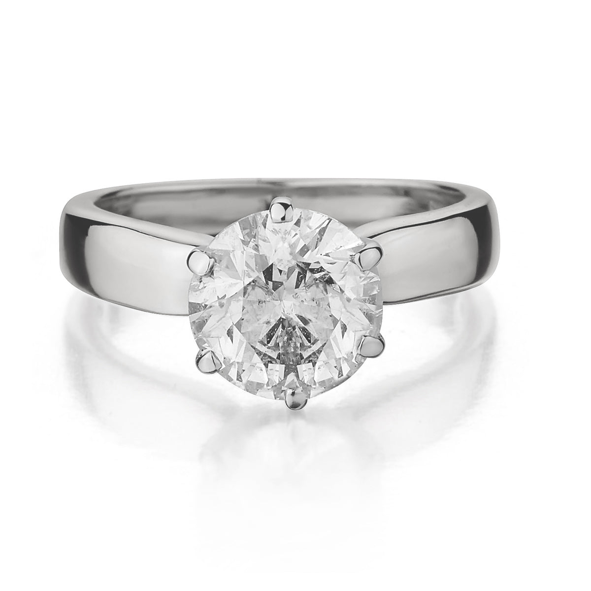 Platinum diamond solitaire ring featuring a European cut diamond weighing 1.52 carat weight of (VS) in clarity and (J-K) in colour. 6 claw setting. Current finger size: 7. This ring can be resized.