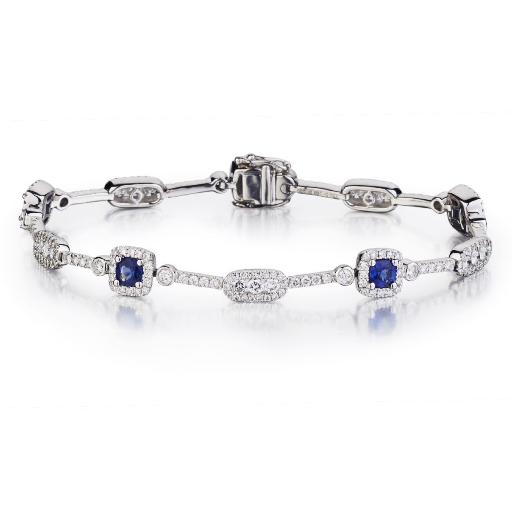 • Sapphire And Diamond Halo-Set 18KT White Gold Bracelet