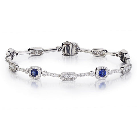 Sapphire And Diamond Halo-Set 18KT White Gold Bracelet
