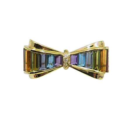 Stunning 18kt Yellow Gold Rainbow Coloured Brooch