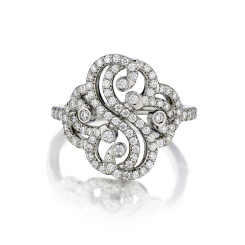 • Tiffany & Co Platinum Enchant Double Heart Diamond Ring.