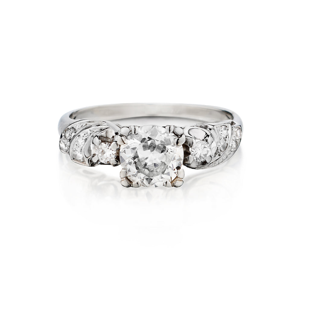 Vintage 14kt White Gold Diamond Ring. 1.20 European Cut Dimaond