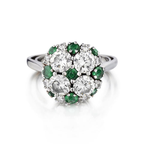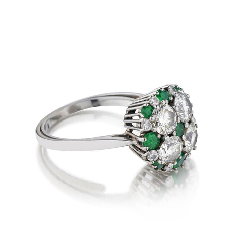 Vintage Diamond and Green Emerald Cluster Ring.